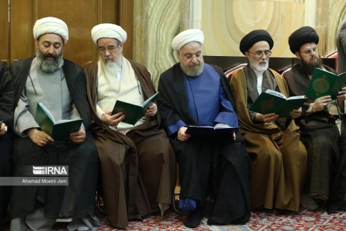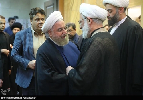 حضور دکتر روحانی در مراسم ترحیم همسر حجتالاسلاموالمسلمین منتظری