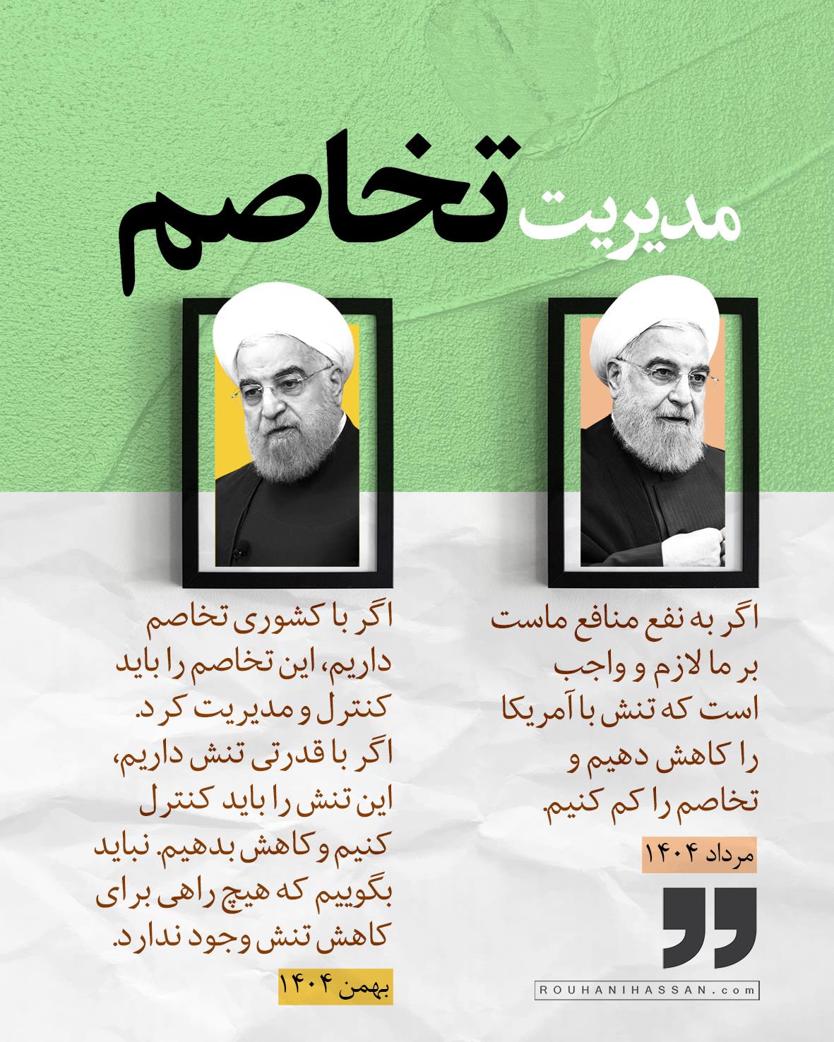 اگر با کشوری تخاصم داریم، این تخاصم را باید کنترل و مدیریت کرد. اگر با قدرتی تنش داریم، این تنش را باید کنترل کنیم و کاهش بدهیم. نباید بگوییم که هیچ راهی برای کاهش تنش وجود ندارد.