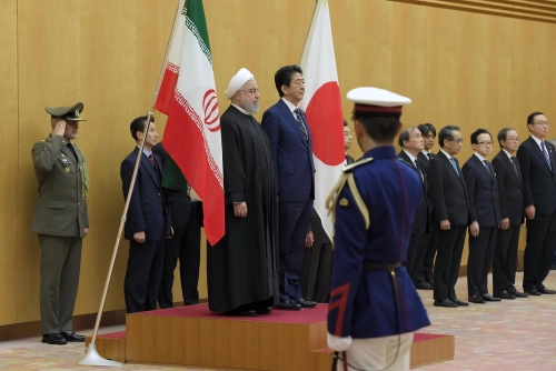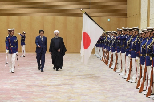 «آبهشینزو» نخستوزیر ژاپن روز جمعه در کاخ نخستوزیری این کشور بهطور رسمی از حجتالاسلاموالمسلمین دکتر حسن روحانی، رئیسجمهوری اسلامی ایران استقبال کرد.