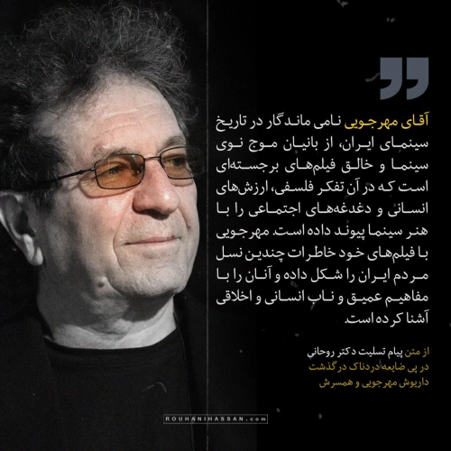 آقای مهرجویی نامی ماندگار در تاریخ سینمای ایران، از بانیان موج نوی سینما و خالق فیلمهای برجستهای است که در آن تفکر فلسفی، ارزشهای انسانی و دغدغههای اجتماعی را با هنر سینما پیوند داده است. مهرجویی با فیلمهای خود خاطرات چندین نسل مردم ایران را شکل داده و آنان را با مفاهیم عمیق و ناب انسانی و اخلاقی آشنا کرده است.