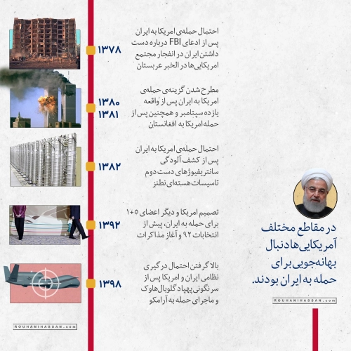 حجتالاسلاموالمسلمین دکتر حسن روحانی، رئیسجمهور ایران در دورههای یازدهم و دوازدهم در سخنانی در جمع مشاورین خود، در تحلیل شرایط پس از جنگ ۱۲ روزه گفت: اسرائیل و آمریکا سالها بود دشمن جمهوری اسلامی ایران و ملت ایران بودند. در مقاطعی هم تجاوز کردند. آمریکاییها در همان سالهای اول انقلاب در سال ۵۹ ماجرای طبس را دارند. آمریکاییها در سال ۶۶ و ۶۷ در جنگ ایران و عراق حضور پیدا کردند و مداخله کردند، قبلش هم البته مداخله اطلاعاتی میکردند اما در خلیج فارس مداخله عملیاتی کردند که در ۱۲ تیر ۶۷ به سرنگونی هواپیمای ایرباس مسافربری منتهی شد. در مقاطع دیگر هم آمریکاییها طراحی حمله به ایران داشتند؛ مثلاً به دلیل انفجار خبر و تحقیقاتی که افبیآی از سال ۷۵ کرد، در ۷۸ اعلام کرد که این عملیات توسط ایران طراحی شده بود. آن وقت بحث حمله احتمالی آمریکا به ایران مطرح بود که از آن عبور کردیم که در یک زمانی میشود تفصیل آن را بیان کرد. در سال ۸۰ بعد از موضوع برجهای دوقلو یک بحث این بود که آمریکا به چه کشوری حمله کند، بحث ایران هم آن وقت مطرح بود که عملاً آنها به افغانستان حمله کردند. بعد در سال ۸۱ دومرتبه این بحث مطرح شد که بعد از افغانستان نوبت ایران باشد یا عراق که برخی حامی این بودند که عملیات علیه ایران انجام بگیرد، مخصوصاً اسرائیلیها که خب منتهی شد به حمله آمریکا به عراق. در سال ۸۲ زمانی که آلودگی بالای ۸۰ درصد در نطنز توسط آژانس کشف شد، بهانه لازم در اختیار آمریکاییها گذاشت، باز هم بحث حمله مطرح بود. البته با تدبیری که نظام جمهوری اسلامی ایران طراحی کرد و با مذاکره با سه کشور اروپایی در نهایت به هرحال منتهی شد به اینکه مانع از این حمله و جنگ شد. در سال ۹۲ هم نه تنها آمریکا، بلکه ۱+۵ تصمیم گرفته بودند به ایران حمله کنند. آن هم با حضور مردم در انتخابات در سال ۹۲، با ۷۳ درصد مردمی که در انتخابات حضور پیدا کردند با آن شور و شوق، جلوی آن کار گرفته شد و بعد هم مذاکرات هستهای شروع شد که مانع اصلی شد برای حمله به ایران. در سال ۹۸ هم احتمال درگیری بود، مخصوصاً بعد از سرنگونی پهپاد آمریکایی گلوبال هاوک و بعد هم ماجرایی که در آرامکو پیش آمد و تهدیداتی که آمریکاییها کردند که آن هم به گونهای عبور کردیم که آن هم در یک زمانی اگر لازم باشد تفصیل آن را میشود بیان کرد. پس در مقاطع مختلف شرایطی بود که آمریکاییها دنبال بهانهجویی برای حمله به ایران بودند. اسرائیلیها هم سالها بود که علیه ایران اقدام میکردند، کشتن دانشمندان هستهای، مسأله استاکسنت و این مسائل، حملاتی که به نطنز کردند از طریق جاسوسهای خودشان، از طریق کوادکوپتر و امثال اینها، همواره به یک نحوی علیه جمهوری اسلامی ایران تلاش میکردند.