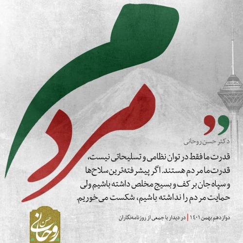 "هیچ نهاد غیر انتخابی در کشور وجود ندارد و همه نهادها و مسؤولین مشروعیت خود را از اراده و خواست مردم کسب میکنند. اینکه خداوند به پیامبر خویش دستور میدهد که با مردم مشورت کن و از زنان و مردان بیعت بگیر، به خاطر این است که بخش بزرگی از مشروعیت اجتماعی و حقوقی از جانب مردم حاصل میشود و به همین دلیل هر کاری در کشور انجام میدهیم نباید رضایت عامه نادیده گرفته شود. رضایت خاصه و رضایت یک جناح و یک قوم ما را به جایی نمیرساند و باید رضایت عامه مردم را مدنظر قرار دهیم و بر این اساس اقدام و حرکت کنیم. همه باید بدانند که بالاتر از مردم و بالاتر از قانون نداریم. هیچ نهادی مقدس نیست مگر اینکه در چار چوب قانون و خواست مردم حرکت کند. این ها برای ما روشن است."