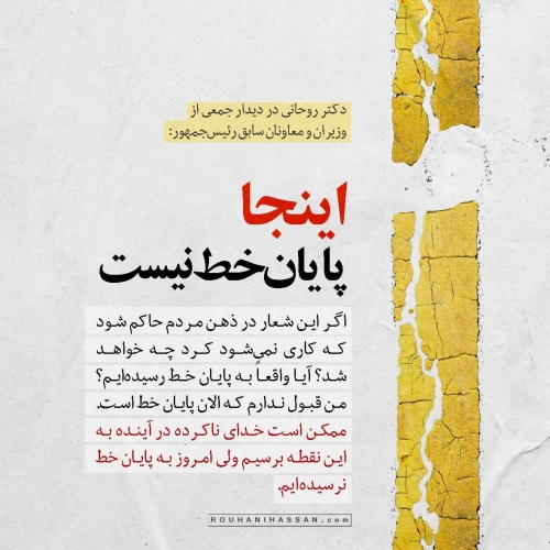 اگر این شعار در ذهن مردم حاکم شود که کاری نمیشود کرد چه خواهد شد؟ آیا واقعاً به پایان خط رسیدهایم؟ من قبول ندارم که الان پایان خط است. ممکن است خدای ناکرده در آینده به این نقطه برسیم ولی امروز به پایان خط نرسیدهایم.