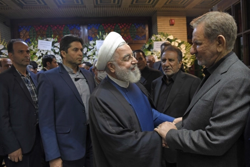 حضور دکتر حسن روحانی در مراسم ترحیم والده اسحاق جهانگیری