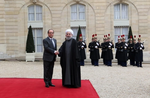 مراسم استقبال رئیسجمهوری فرانسه از حجتالاسلاموالمسلمین دکتر حسن روحانی، رئیسجمهوری اسلامی ایران در کاخ الیزه برگزار شد.