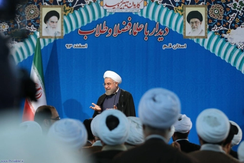 رییس جمهوری در جمع علما، فضلا و طلاب استان قم با تاکید بر اینکه حوزه علمیه باید برای حل مشکلات کشور، تحقیق و نظریه پردازی کند، گفت: امروز برای اداره کشور صدها مساله مهم داریم که شما علما، فضلا و طلاب حوزه علمیه باید برای حل آنها نظریه پردازی کنید.