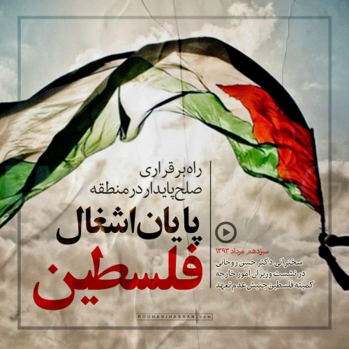 جمهوری اسلامی ایران بر این باور است که درگیریها و اختلافات درازمدت خاورمیانه و برقراری صلحی عادلانه و پایدار در منطقه، جز از طریق حلوفصل مشکل فلسطین و پایان دادن به اشغال کلیه سرزمینهای اشغالی، اعطای حق تعیین سرنوشت به ملت فلسطین، بازگشت کلیه آوارگان به سرزمین آباء و اجدادی خویش و تشکیل دولت یکپارچه فلسطینی به پایتختی قدس شریف، در بستر برگزاری یک همهپرسی با شرکت تمام اقوام و ساکنان تاریخی این سرزمین به سرانجام نخواهد رسید. تردیدی نیست که ملت فلسطین با درک درست واقعیات و بهرهگیری از تجربه بیش از شش دهه رویارویی با اشغالگران، اینک با اتکاء به تواناییهای ذاتی خویش راه به خود را در استمرار مقاومت تا احقاق کامل حقوق حقّه مردم فلسطین میداند و بر دوستداران و یاران فلسطین نیز واجب و لازم است تا به تبعیت از خواست این ملت رشید و بزرگ همانند گذشته در همین مسیر گام بردارند./ سخنرانی دکتر حسن روحانی در نشست وزیران امور خارجه کمیته فلسطین جنبش عدم تعهد | ۱۳۹۳/۰۵/۱۳