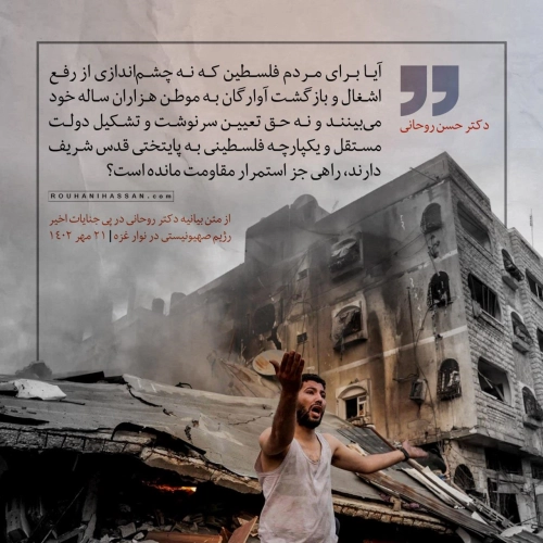آیا برای مردم فلسطین که نه چشماندازی از رفع اشغال و بازگشت آوارگان به موطن هزاران ساله خود میبینند و نه حق تعیین سرنوشت و تشکیل دولت مستقل و یکپارچه فلسطینی به پایتختی قدس شریف دارند، راهی جز استمرار مقاومت مانده است؟
