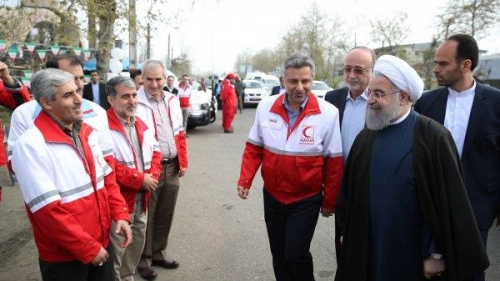 حجتالاسلاموالمسلمین دکتر حسن روحانی، رئیسجمهوری روز پنجشنبه و بلافاصله پس از خروج از فرودگاه بینالمللی سردار جنگل رشت با حضور در یکی از پایگاههای امدادرسانی نوروزی هلالاحمر، از خدمات و تلاشهای آنان قدردانی کرد.