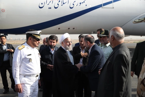 حجتالاسلاموالمسلمین دکتر حسن روحانی، رئیسجمهوری صبح یکشنبه با استقبال استاندار خوزستان و جمعی از مقامات ارشد محلی این استان، وارد فرودگاه بینالمللی اهواز شد.