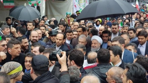 رئیس جمهوری دقایقی پیش به خیل عظیم راهپیمایان یوم الله ۲۲ بهمن پیوست و همراه با مردم سرافراز و انقلابی در جشن چهل سالگی انقلاب اسلامی شرکت کرد.