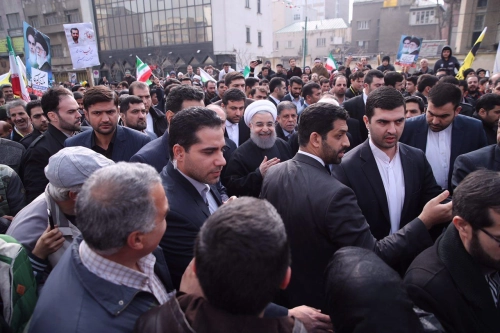 رییس جمهوری دقایقی پیش به خیل عظیم راهپیمایان یومالله ۲۲ بهمن پیوست و همراه با مردم در جشن سی و هشتمین سالگرد پیروزی انقلاب اسلامی شرکت کرد.