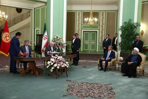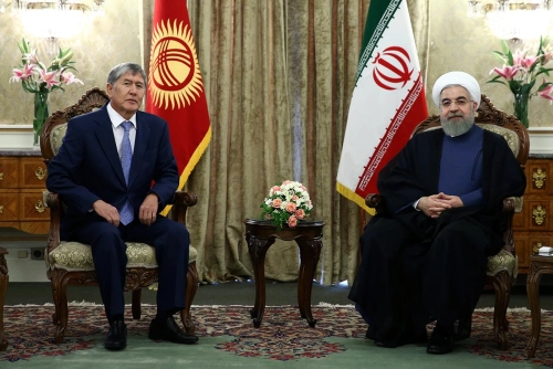 حجتالاسلاموالمسلمین دکتر حسن روحانی و آلماس بیگ آتامبایف روسای جمهوری ایران و قرقیزستان صبح شنبه پس از دیدار خصوصی و مذاکرات هیاتهای عالیرتبه ایران و قرقیزستان، در مراسم امضای اسناد میان مقامات دو کشور حضور یافتند.